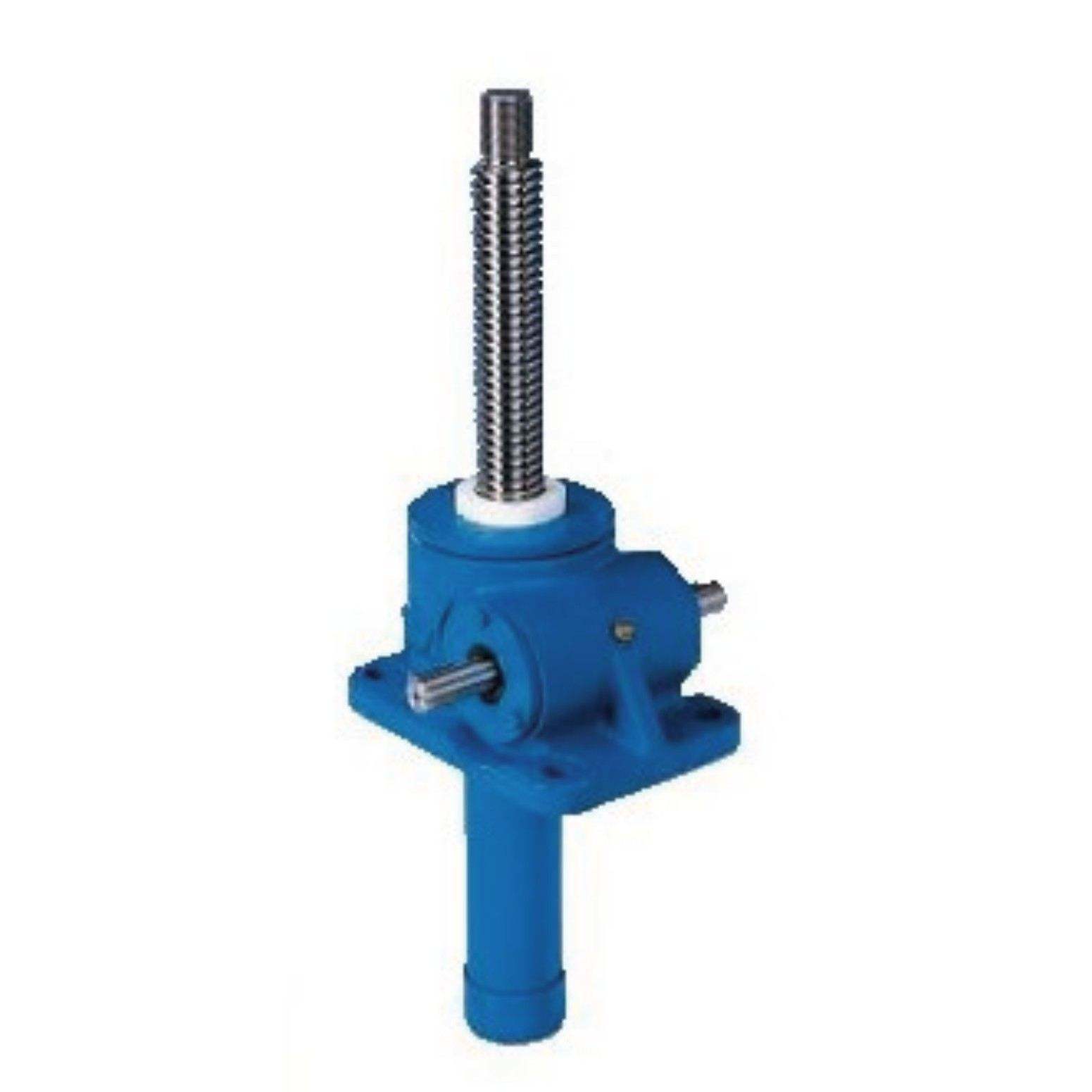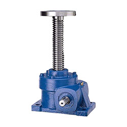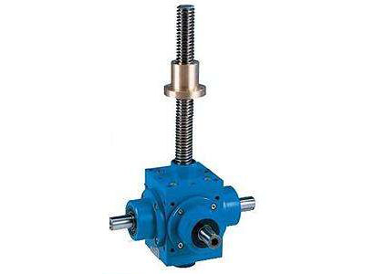 螺旋升降機(jī)由蝸輪、箱體、軸承、絲杠等部件組成。其工作原理是:電機(jī)或手動(dòng)帶動(dòng)蝸桿旋轉(zhuǎn),蝸桿帶動(dòng)蝸輪減速旋轉(zhuǎn),蝸輪內(nèi)腔加工成內(nèi)螺紋,傳動(dòng)螺桿上下移動(dòng)。由于內(nèi)有蝸輪蝸桿,螺桿的減速作用會(huì)增大推