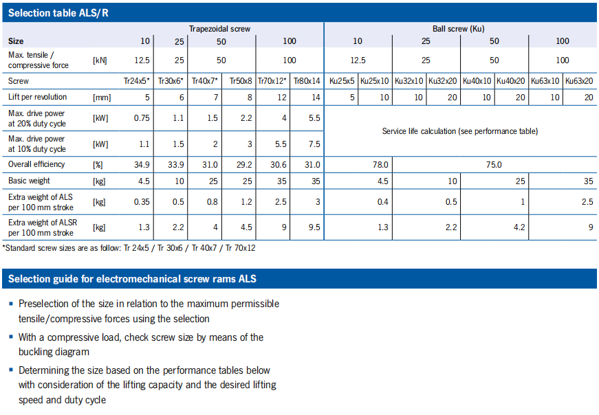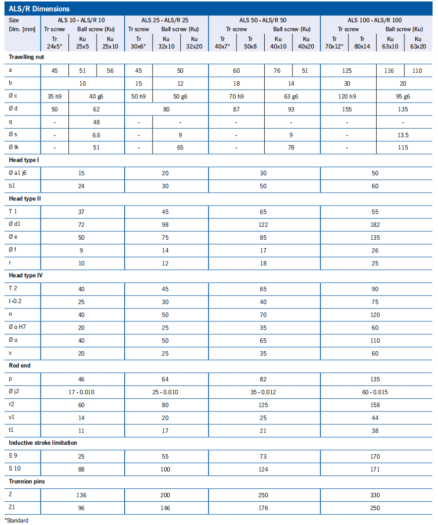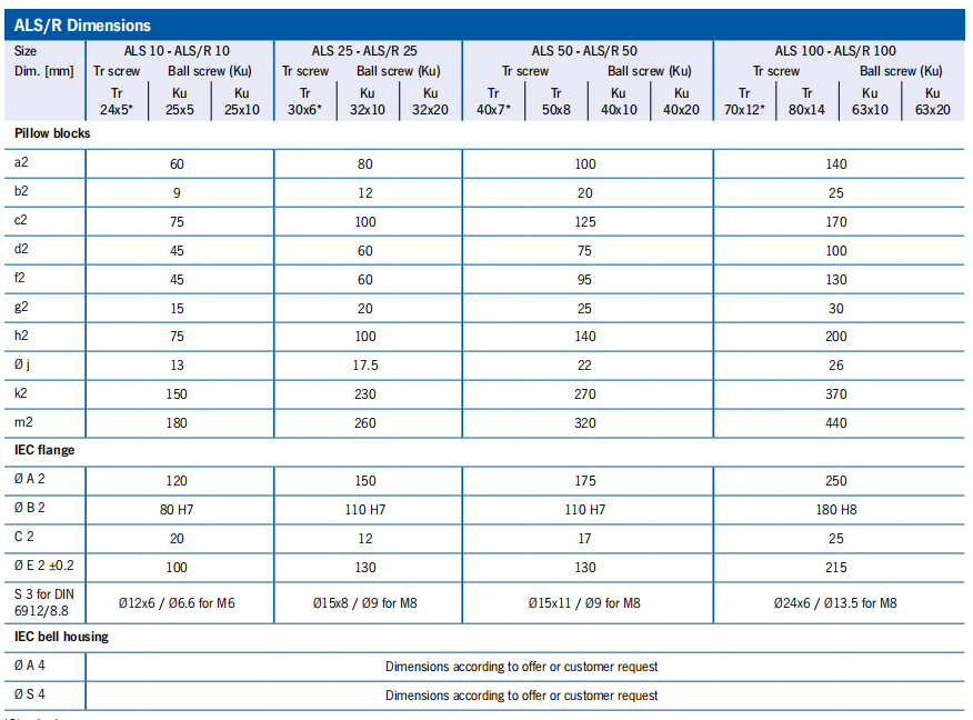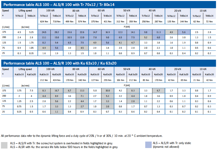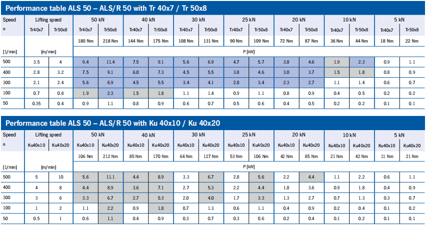 ALS/R Performance data tables ALS 50/100