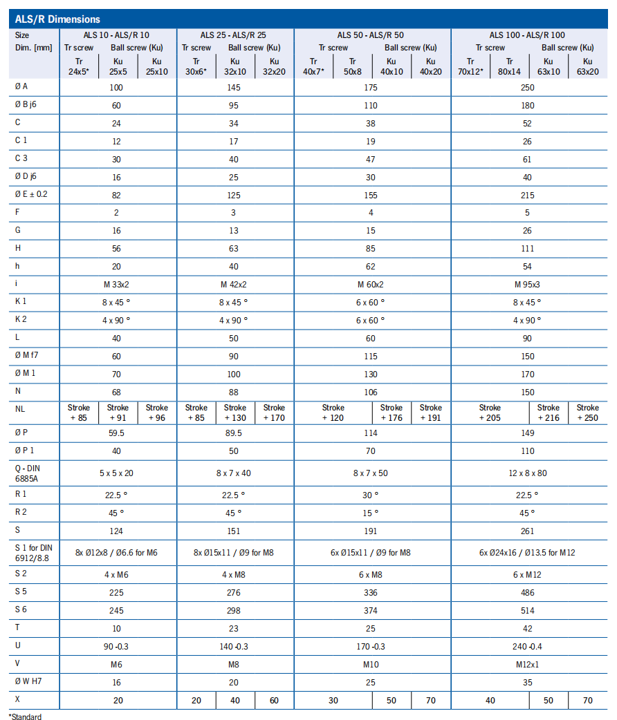 ALS/R Dimensions