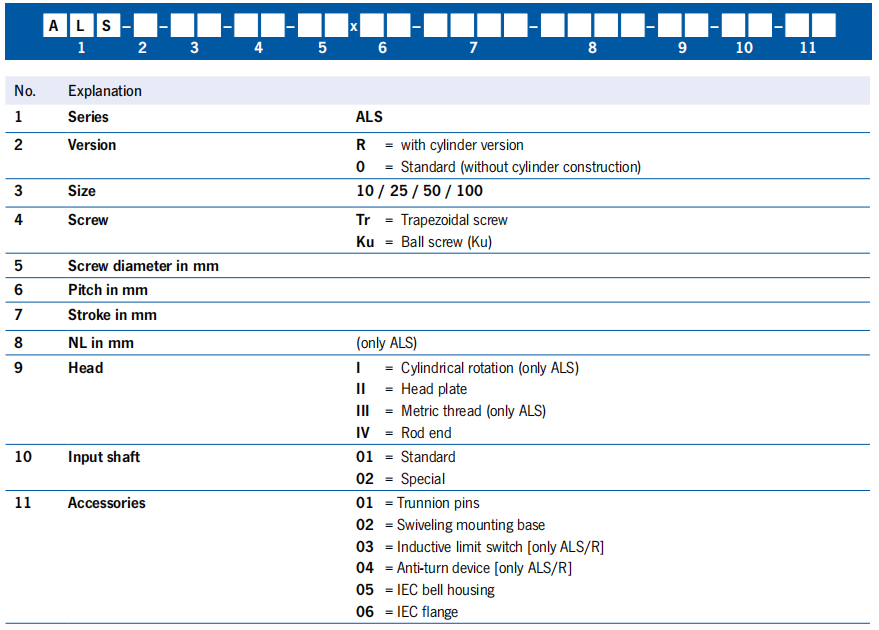 ALS/R Order code