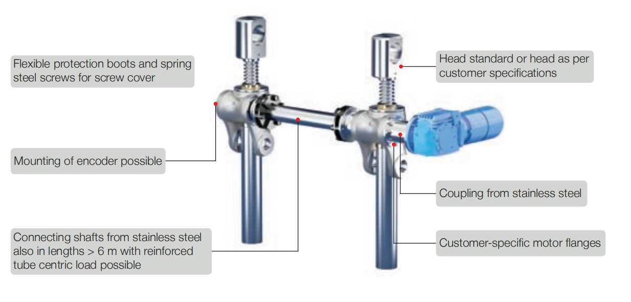 為了將單個螺釘千斤頂升級為完整的驅(qū)動系統(tǒng),我們提供全面的附件,不銹鋼版本。