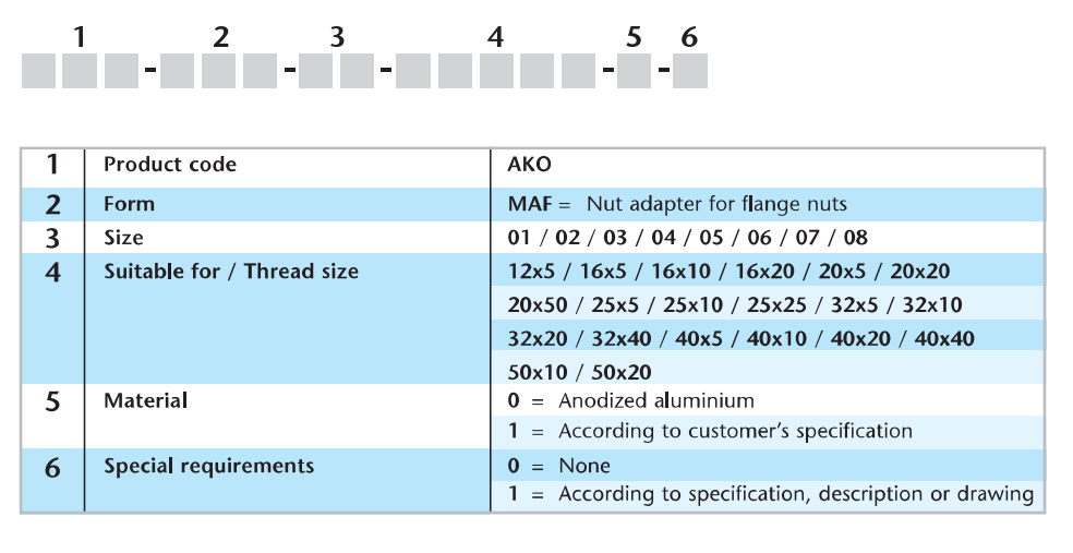 螺母適配器 AKO 的訂單代碼: